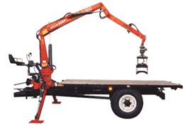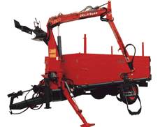 disteso sul cassone o anteriormente alla trattrice. Dotazione standard per G300: - due appoggi idraulici indipendenti - rotazione 300° e ritorno - motoriduttore con freno - braccio senza telescopico - girevole 300° e ritorno per pinza - pinza per tronchi PTR Ap=1000 - posto guida fisso al telaio - azionamento con circuito idraulico del trattore |